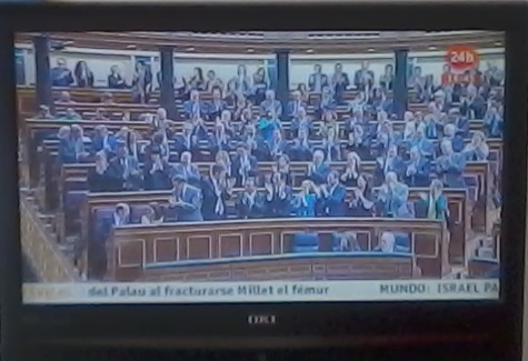 Quizás Coscubiela intentó arriesgar más, si se puede considerar arriesgar insistir en el outfit de las camisetas con mensajes, que en su caso, además, al llevarla tan tapada por la chaqueta, no tenías claro si era una t-shirt reivindicativa o no le había dado tiempo a cambiarse después del running por el Retiro. Me pareció ver también a alguien de Amaiur rompiendo su estereotipo y confudiéndose con un diputado de ERC o incluso con un verificador, uno que parecía así más modernillo. Y me perdí el plano de Cospedal, pero oí que estaba en la tercera fila y leí mucho sobre su gesto así que intuyo que debía llevar coleta, ergo no fue a la peluquería, y hablo en serio, que manejo fuentes muy solventes en todo lo que atañe a la comunicación no verbal de nuestras políticas.